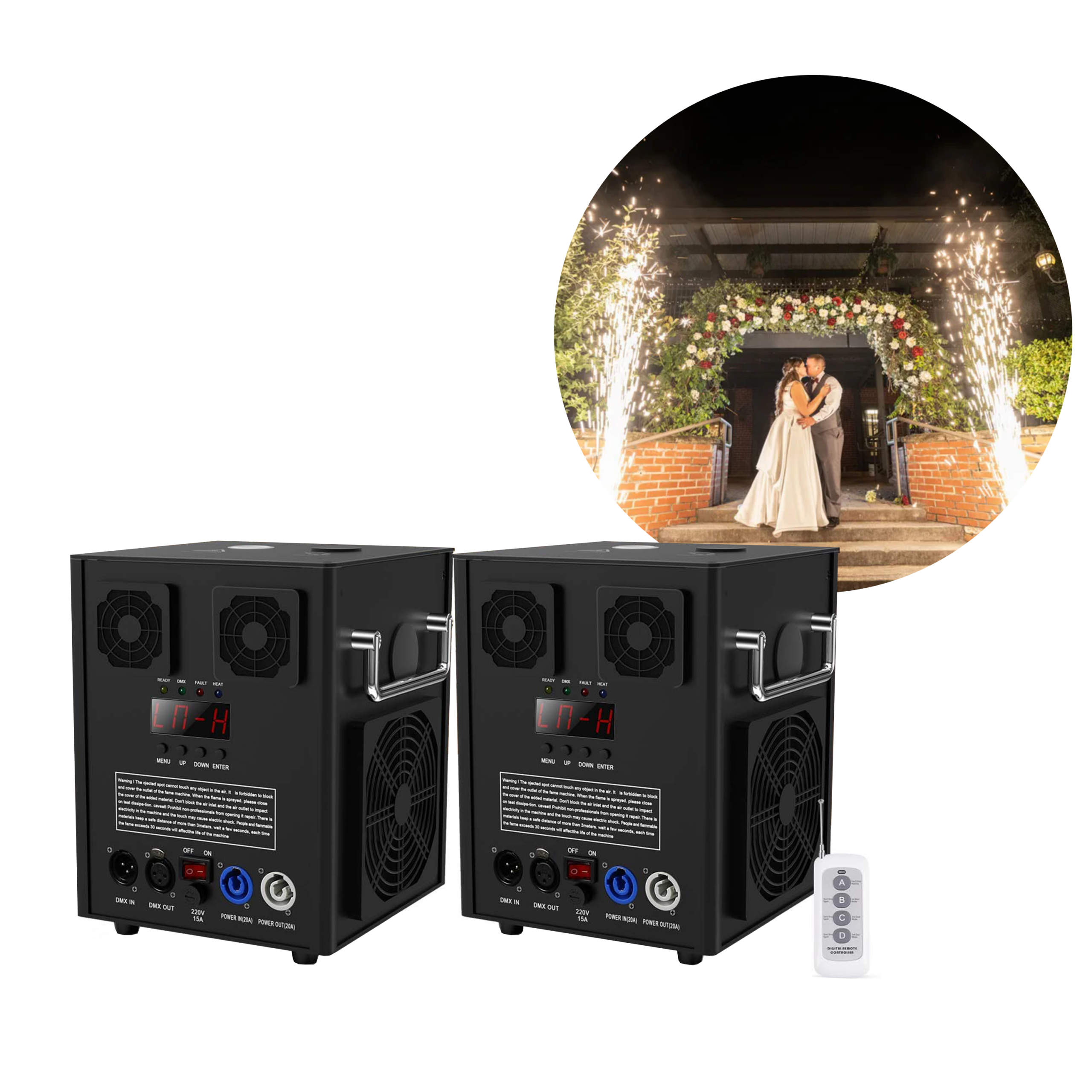 2x Kaltfunkenmaschinen für Spektakuläre Funken-Effekte – ganz ohne offene Flamme und indoor einsetzbar. Ein echtes Highlight für Eröffnungstanz, Hochzeitstorte oder weitere Fotos. Auch mit Fernbedienung steuerbar.