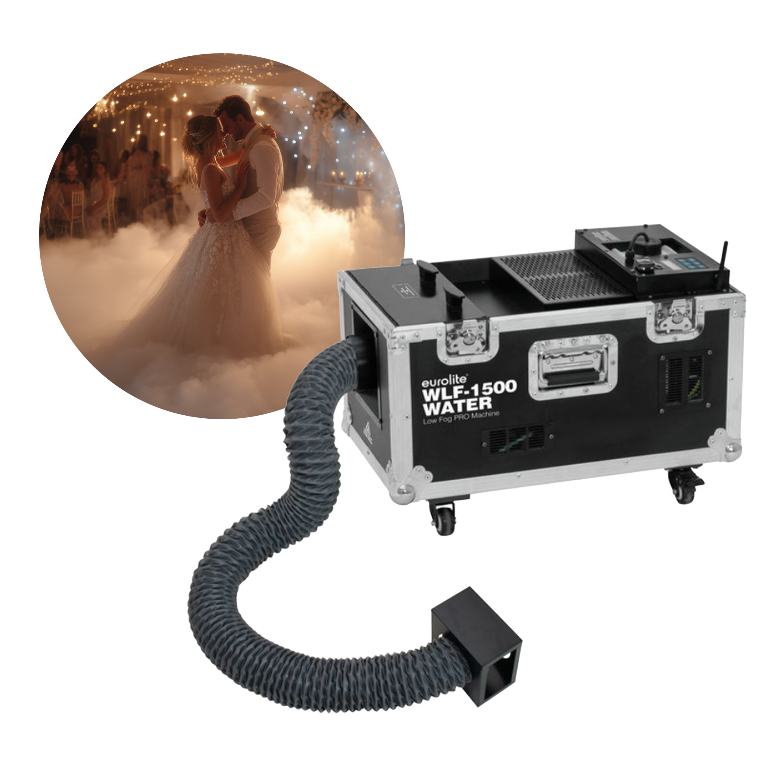 Eurolite WLF-1500 – Dichter Nebel, der tief über dem Boden schwebt und einen traumhaften „Wolken-Effekt“ erzeugt. Besonders beliebt für den Eröffnungstanz und romantische Fotos.